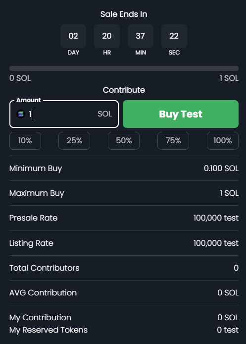 7. Congratulations! You've successfully contributed on the presale.